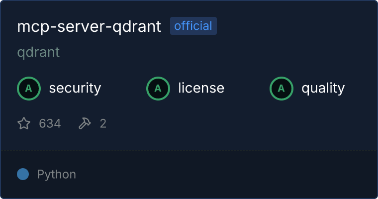 <a href="https://glama.ai/mcp/servers/9ejy5scw5i "><img width="380" height="200" src="https://glama.ai/mcp/servers/9ejy5scw5i/badge " alt="mcp-server-qdrant MCP server" /></a>